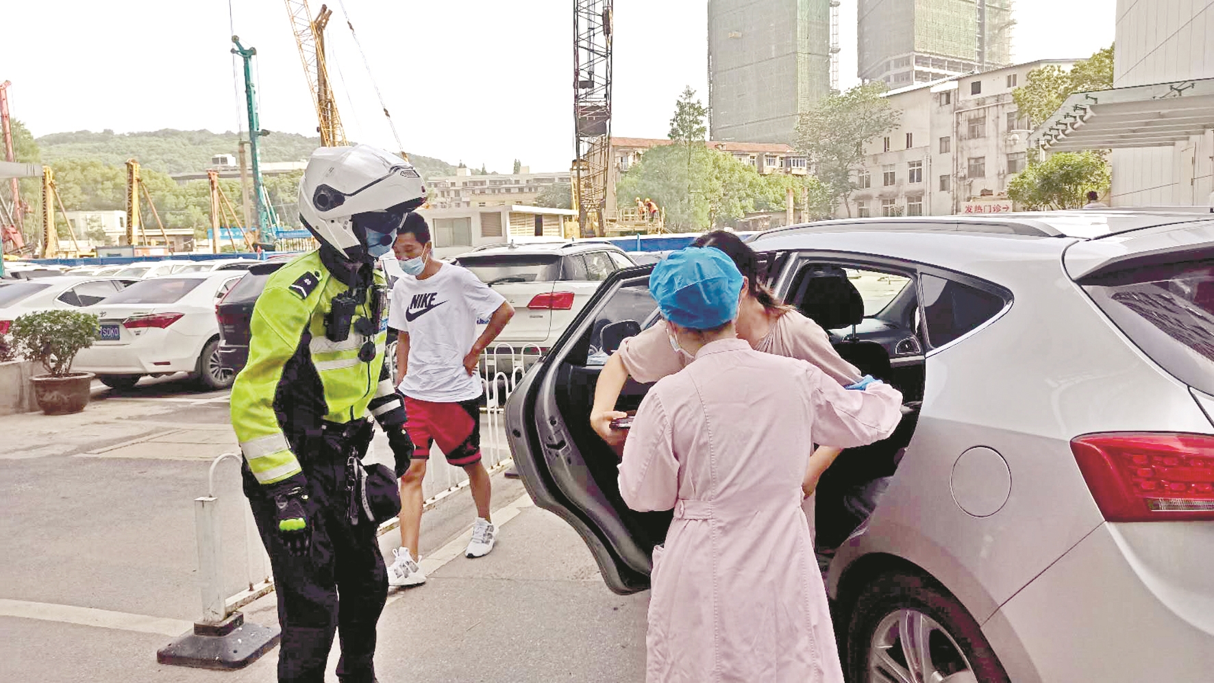 楚天都市報訊(記者葉文波 通訊員崔彥偉 張首恒 黃一燕)高齡孕婦臨產遇上早高峰堵車,車流中,武漢洪山“漢警快騎”隊員閃警燈鳴警笛,持續揮臂開辟一條生命通道,孕婦抵達醫院15分鐘后產下一名男嬰,母子平安。昨日上午,孕婦家屬將一面鮮紅錦旗送到洪山區交通大隊警員姜璐航手中,感謝他保駕護航。