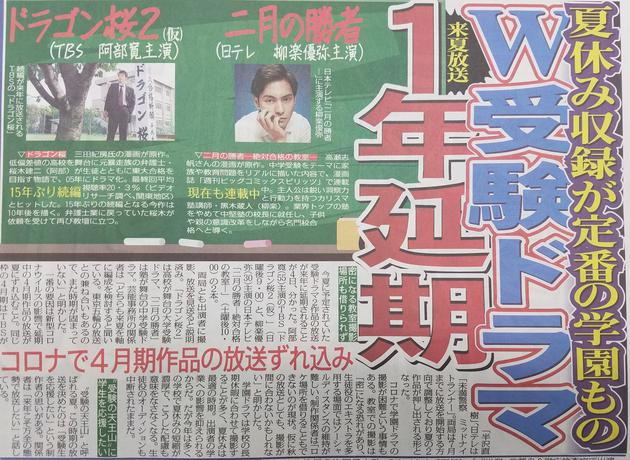 網易娛樂6月5日報道 據日媒報道,阿部寬主演《龍櫻2》和柳樂優彌主演的《二月的勝者—絕對合格的教室》將延期到明年播放。因為校園劇使用的主要場景教室是密閉空間,且學生大部分是群演,所以不利于維持社交距離,現在也無法借到可供使用的教室。制作人員表示,考試劇的關鍵就是要在夏天播放,所以希望能在明年一切都準備就緒的時候播出。