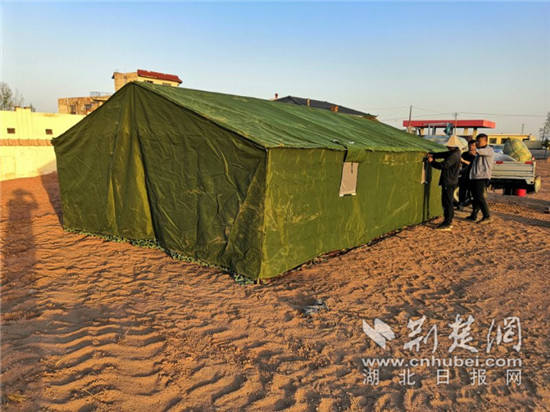 檢驗人員在沙漠里搭帳篷。 通訊員供圖
