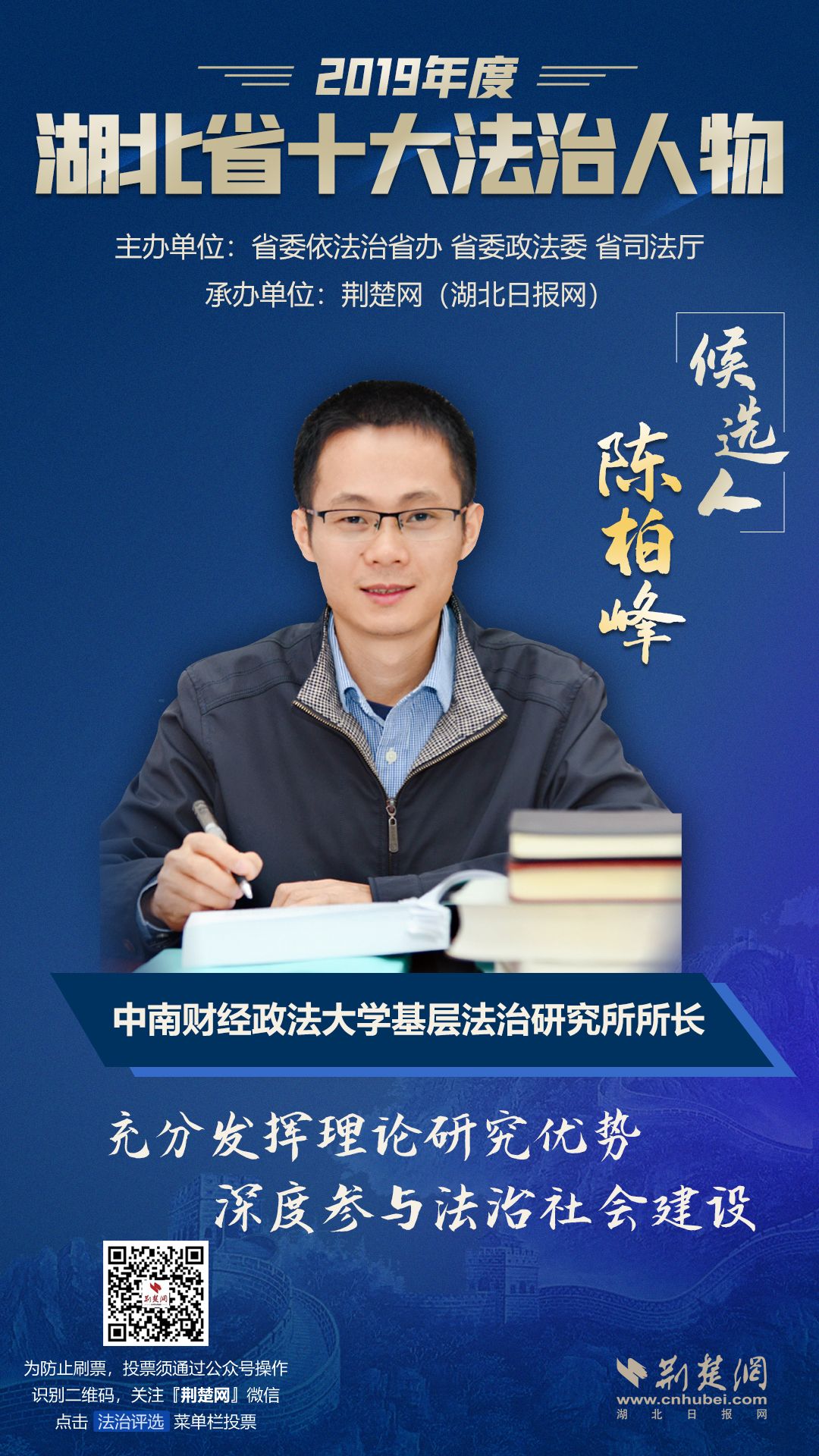陳柏峰,男,1980年9月出生,中共黨員,現任中南財經政法大學教授、人才辦主任,是中南財經政法大學法治發展與司法改革研究中心的首席專家、中南財經政法大學基層法治研究所所長。