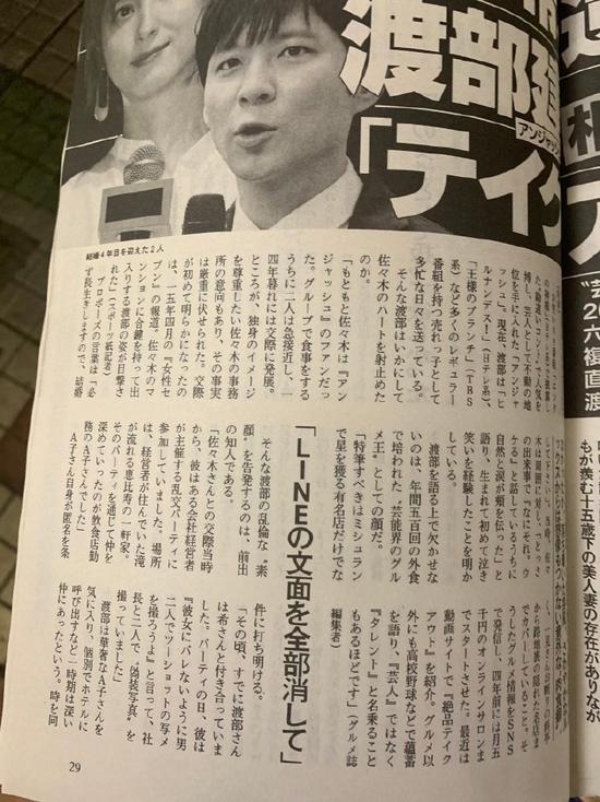網(wǎng)易娛樂6月11日報(bào)道 據(jù)日媒《周刊文春》報(bào)道,渡部建出軌對象再被曝光,年齡跨度從20歲到50歲:既有女藝人,也有50歲相撲女,甚至還有30歲的男性藝人。據(jù)悉,佐佐木希友人透露她曾經(jīng)跟周圍人表示,認(rèn)為父親對孩子成長來說很重要,不會(huì)與丈夫分居也沒有離婚的打算。