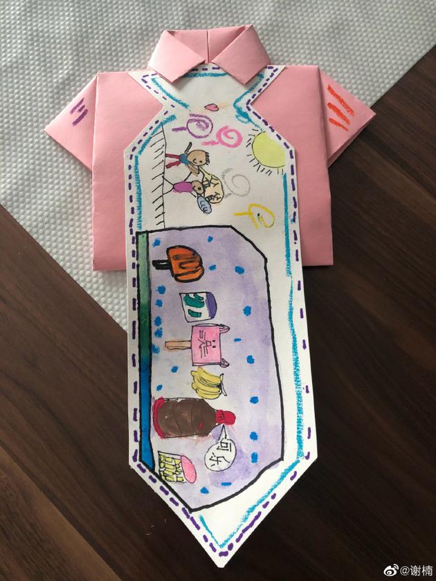 網易娛樂6月16日報道 6月16日凌晨,謝楠在微博曬出兒子吳所謂送給吳京的父親節禮物,并透露了自己與兒子的暖心對話:“這是一份迫不及待的父親節禮物,來自吳所謂。他說媽媽,爸爸會不會不喜歡。我說不會,愛不會因為簡單而改變感受,用心了,體會不到,損失的不是你。你要相信爸爸,而且我相信他”。照片中,是一件粉紅色的折紙襯衫,有長長的領帶。領帶上有兩個小人,其中一個喊著“爸爸”,小人旁邊還有許多食物,香蕉、薯條、可樂等。