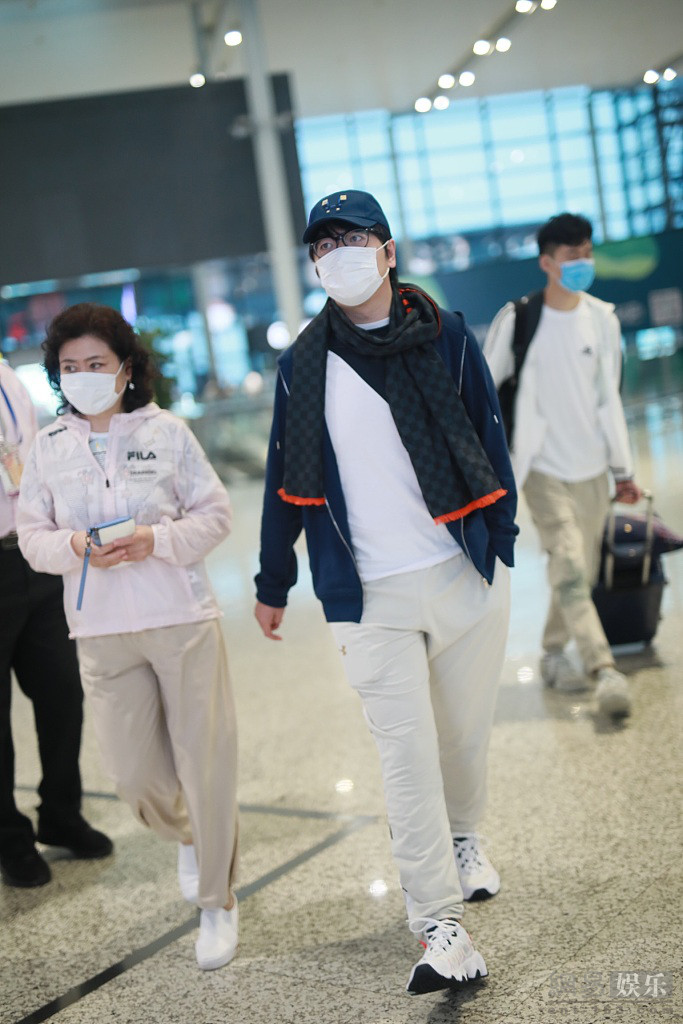 2020年6月15日,上海,郎朗與媽媽現身機場。郎朗系著圍巾很有藝術家風范,與媽媽同框低調趕路。