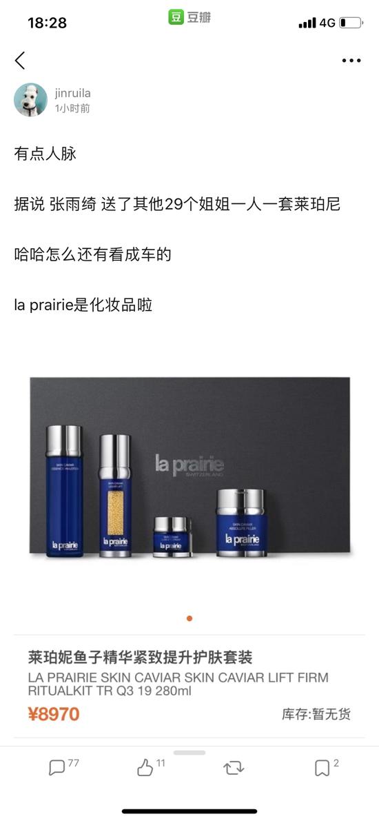 網(wǎng)易娛樂6月16日?qǐng)?bào)道 16日早,有網(wǎng)友爆料稱張雨綺送給了《乘風(fēng)破浪的姐姐》中其他29位選手每人一套高級(jí)化妝品,總價(jià)值超過30萬。