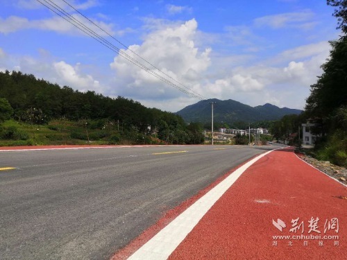 四季花海旅居新鎮度假區是英山重點招商的旅游項目,2017年九大線一期4.2公里水泥路修到景區后,去年又提檔升級為瀝青路。公路兩側配套建有2至2.5米彩色路肩步游道,路面總寬達12米,一通車就蝶變為美麗風景線、城鄉產業線、生態富民線。