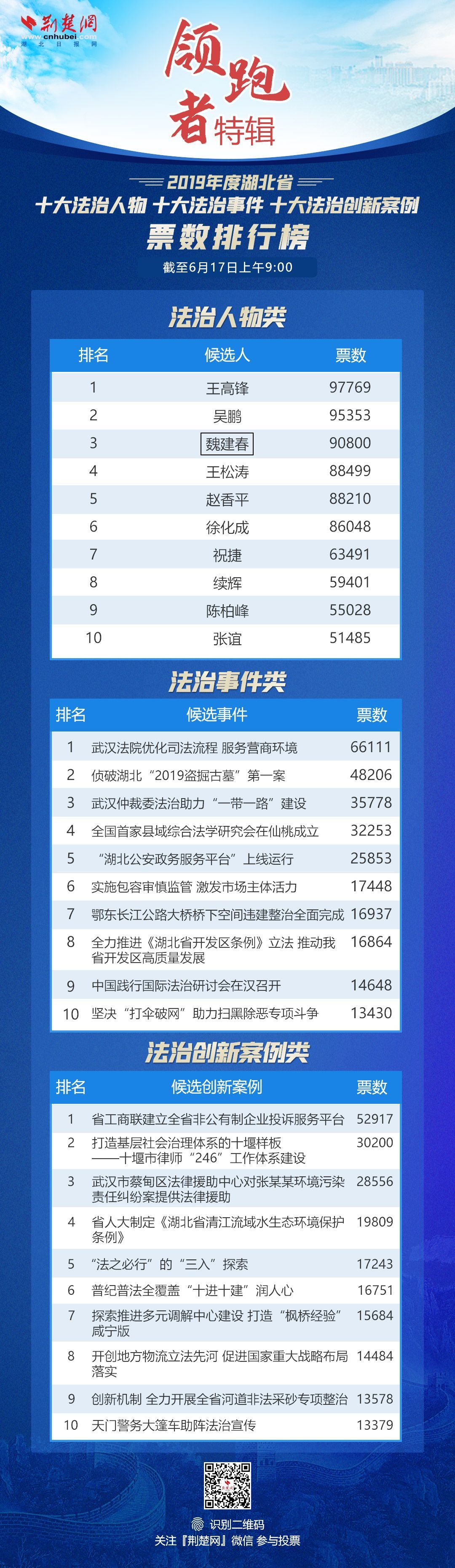 截至6月17日上午9:00,網絡投票總票數約165萬,瀏覽量近200萬。距離投票截止還有不到一天的時間,最新的票數排名情況如何?又有什么新的變化?
