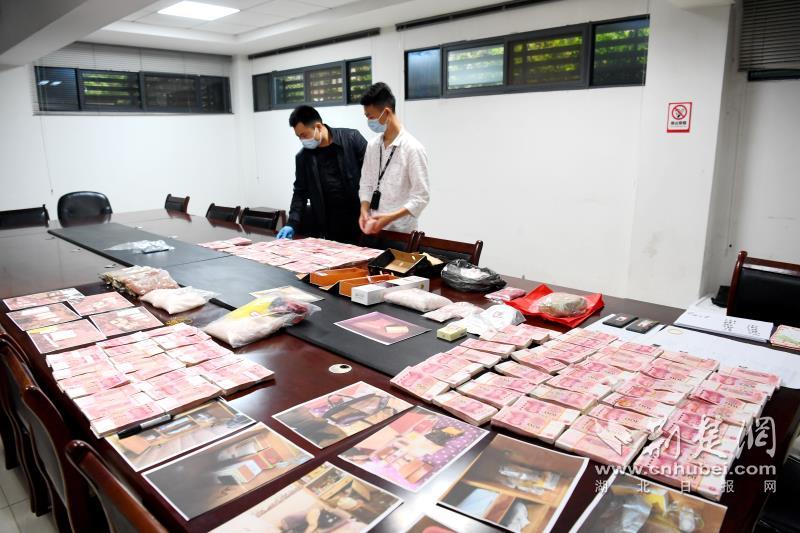 之后,民警在該小區(qū)附近抓獲該團(tuán)伙頭目黃某及其妻子張某,查獲毒資40余萬元。下午3時許,在江漢區(qū)某小區(qū)布控的民警也同步收網(wǎng),在出租屋內(nèi)抓獲該團(tuán)伙成員潘某,現(xiàn)場查獲冰毒、麻果8千克,毒資50余萬元。