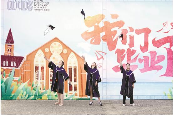 “我們畢業(yè)了!”6月15日,矗立在武漢設計工程學院得一堂廣場上的巨幅歡迎詞仿佛正張開雙臂,歡迎畢業(yè)生返校。