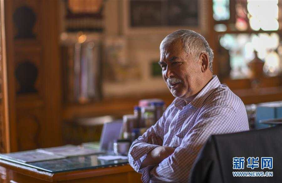 新疆和田縣布扎克鄉布扎克村村民買吐送·巴克在家中喝茶(2019年11月24日攝)。新華社記者 趙戈 攝