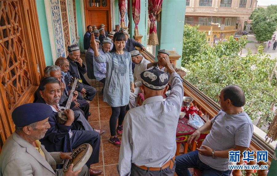 在新疆喀什老城的“百年茶館”,游客和當地茶客邊品茶邊休閑(5月17日攝)。新華社記者 趙戈 攝