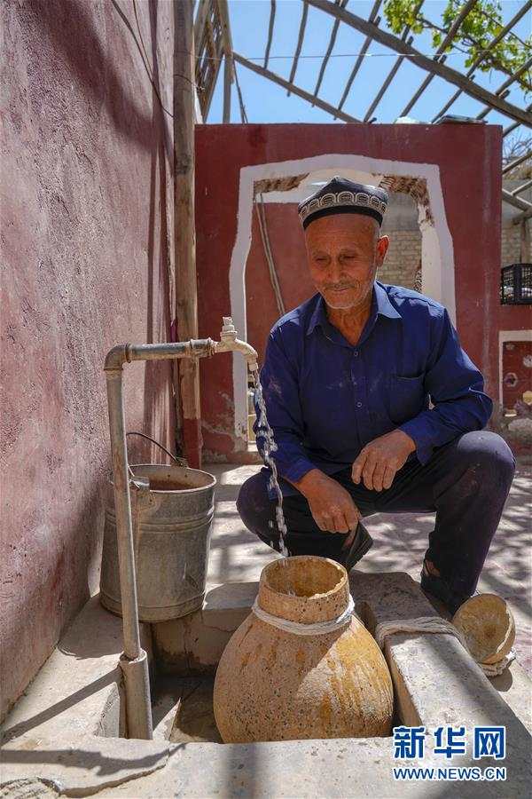 在墨玉縣最后一個自來水入戶的村莊,古稀老人伊敏·吐爾遜回憶說,自己喝過三種水:40年澇壩水,20年地下水,現在則是通到家里的自來水。