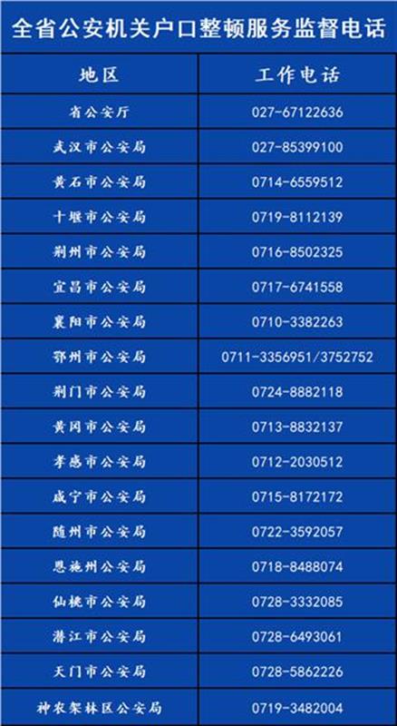 目前,省、市、縣三級公安機關均設立了舉報電話、電子郵箱,開通了官方微博、微信平臺,接受社會各界監督舉報,依法依紀嚴肅查處違規違紀問題。省公安廳監督電話027—6122636。