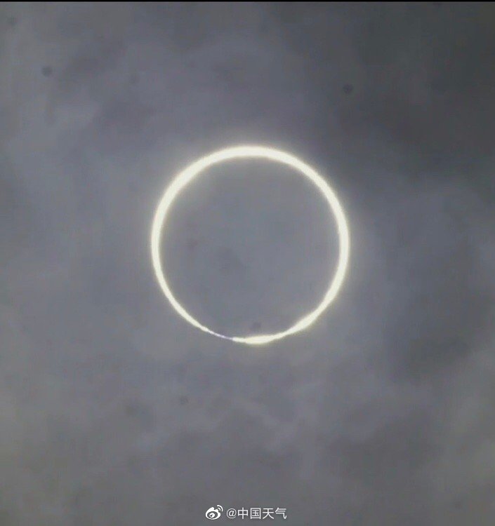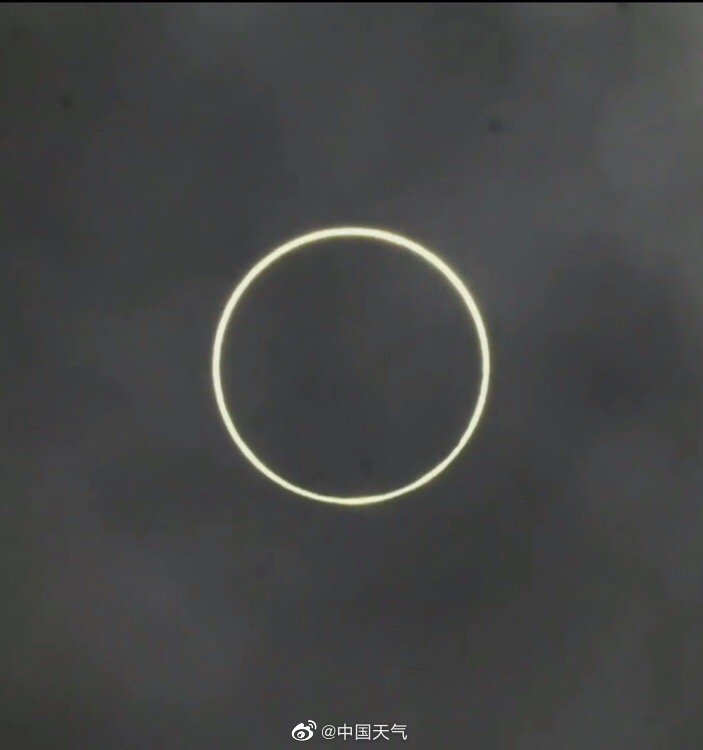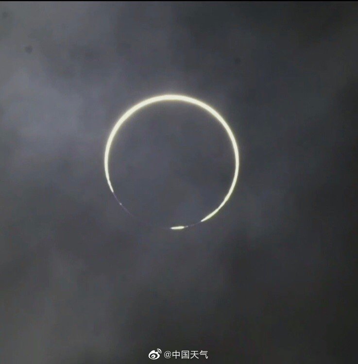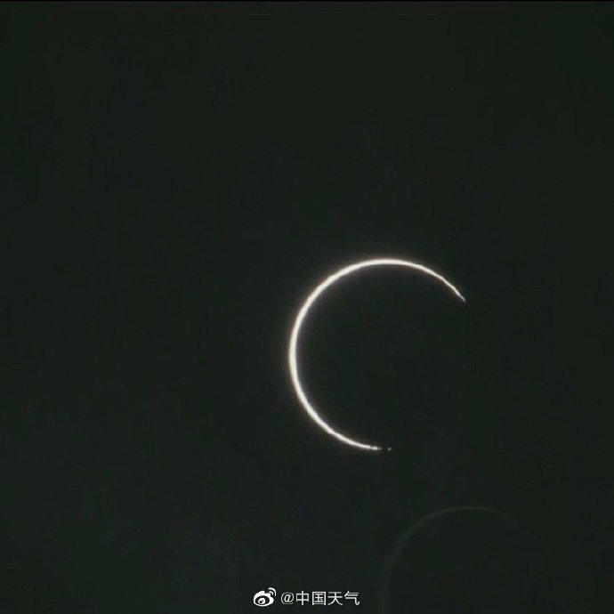 今天既是夏至,又有一場“金邊日食”的重磅天象上演,這也是本世紀唯一一次,在中國可見的恰逢夏至日的日食。圖為西藏阿里出現金邊日環食。(來源:中國天氣)
