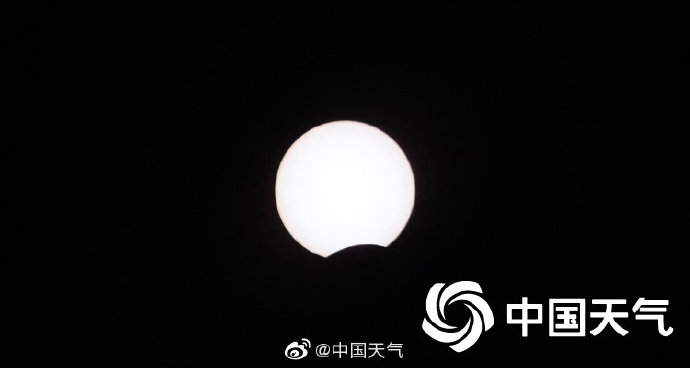 西藏、四川、湖南、福建、貴州、江西和臺灣等地部分地區都在環食帶上,這里的人們可以欣賞到“金邊日食”,北京等環食帶以外地區也可以看到日偏食。圖為西藏阿里出現金邊日環食。