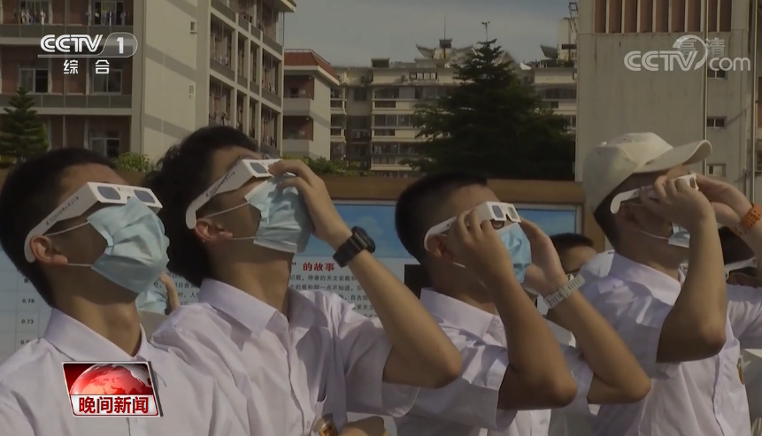 由于食分大,環(huán)食時間長,福建廈門也是最佳觀測地之一。環(huán)食帶的中心線恰巧穿過廈門外國語學(xué)校的操場,近200名高中生在操場上開始追日,最后也如愿看到了呈現(xiàn)金戒指形狀的太陽。