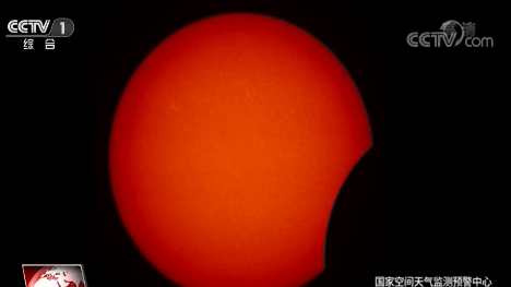 這是中國氣象局空間天氣觀測站山東石島拍下的日偏食畫面。太陽光球色球望遠鏡觀測到日食期間太陽色球?qū)拥淖兓闆r,為空間天氣預(yù)報提供重要參考數(shù)據(jù)。