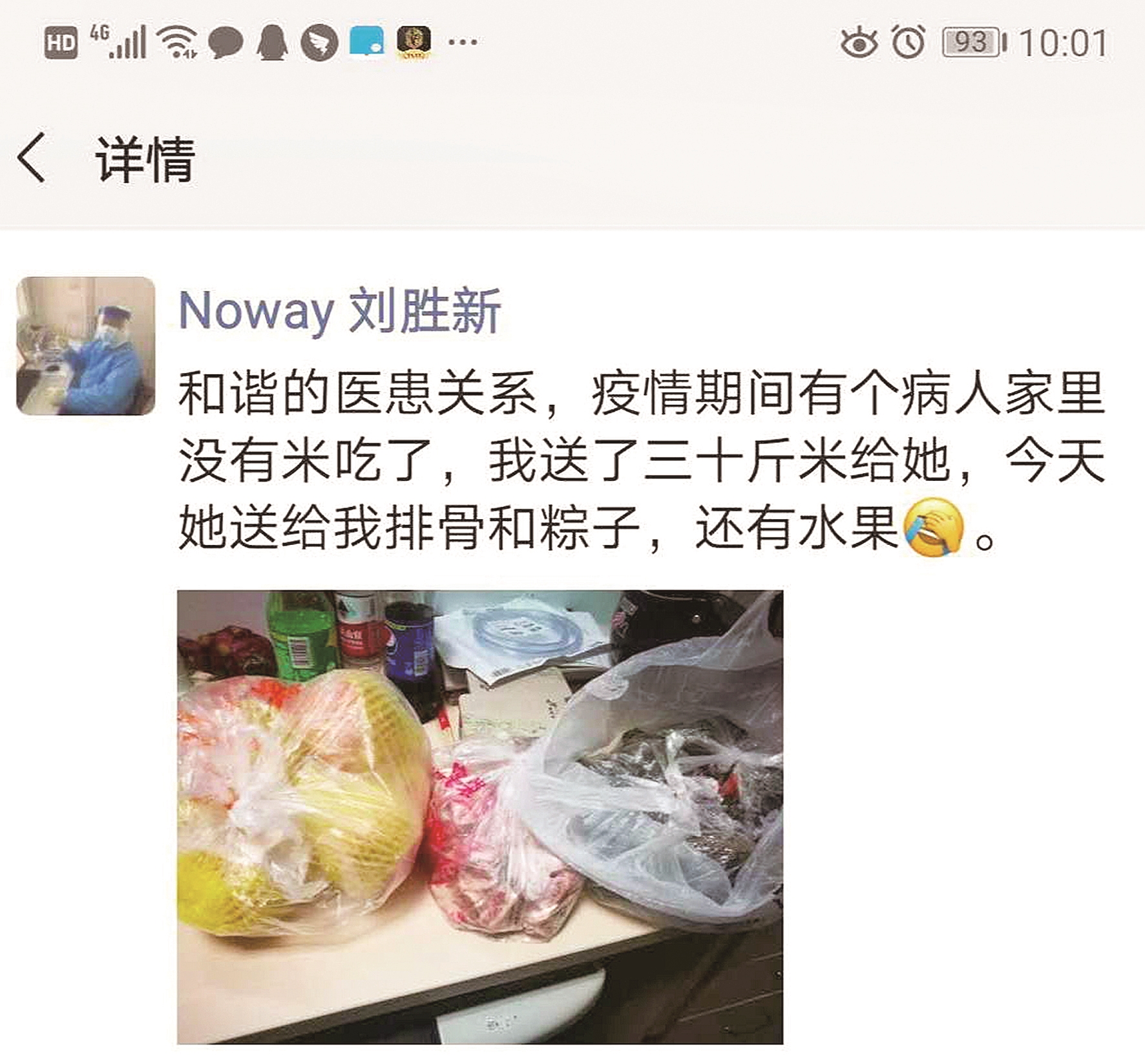 據(jù)同事們介紹,劉勝新給患者送米,大家一點(diǎn)不意外,因為他一向熱心快腸。疫情期間,他始終惦記著住院的患者們,給他們下過面、燉過湯。下班之后,還會去病房探望重病號,陪他們說說話,給他們鼓勁。