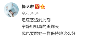 網易娛樂6月25日報道 日前,楊丞琳凌晨4點在微博發文:“追綜藝追到此刻,寧靜姐姐真的美炸天,我也要跟她一樣保持地這么好 。”疑似追近期大熱的綜藝《乘風破浪的姐姐》,被節目中寧靜的表現深深吸引,希望自己在寧靜的這個年齡時也能駐顏有術,活得瀟灑。