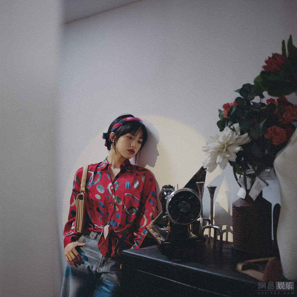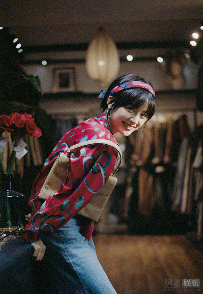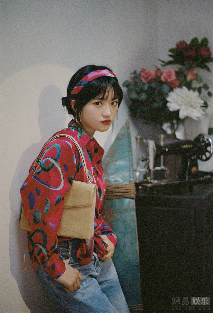 6月24日,沈月的一組寫真大片曝光。畫面中的沈月戴著發帶,身穿紅色印花襯衫和藍色牛仔褲,背著時尚腋下包,造型復古又時髦。