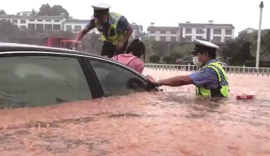 27日12時30分,大雨如注,宜昌市桃花嶺11號小區,因地勢低洼,積水齊腰。市民張女士手握雨傘站在小區門口,急得直跺腳。面前的積水擋住了回家路,家里還有80多歲的老母親。宜昌市特警支隊副支隊長劉南濤和隊友,協助交警部門在該處指揮交通。他看見張女士一臉焦急,主動上前詢問情況,“別著急,我們來想辦法!”