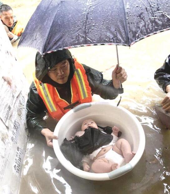 昨日12時10分,宜昌市中南路一居民報警求助,稱自己和一名出生才3個月的嬰兒被困小區。接警后,宜昌市消防救援支隊港窯路特勤站7名消防救援隊員緊急前往現場。此時,該地區內澇嚴重,積水水位還在不斷上升。特勤站站長孫用寶帶領6名救援隊員,蹚過齊腰深的積水趕到報警居民家中,為防止嬰兒淋雨,孫用寶就地取材,把居民家中的塑料盆當成“救生船”,安全地把嬰兒轉移出來。