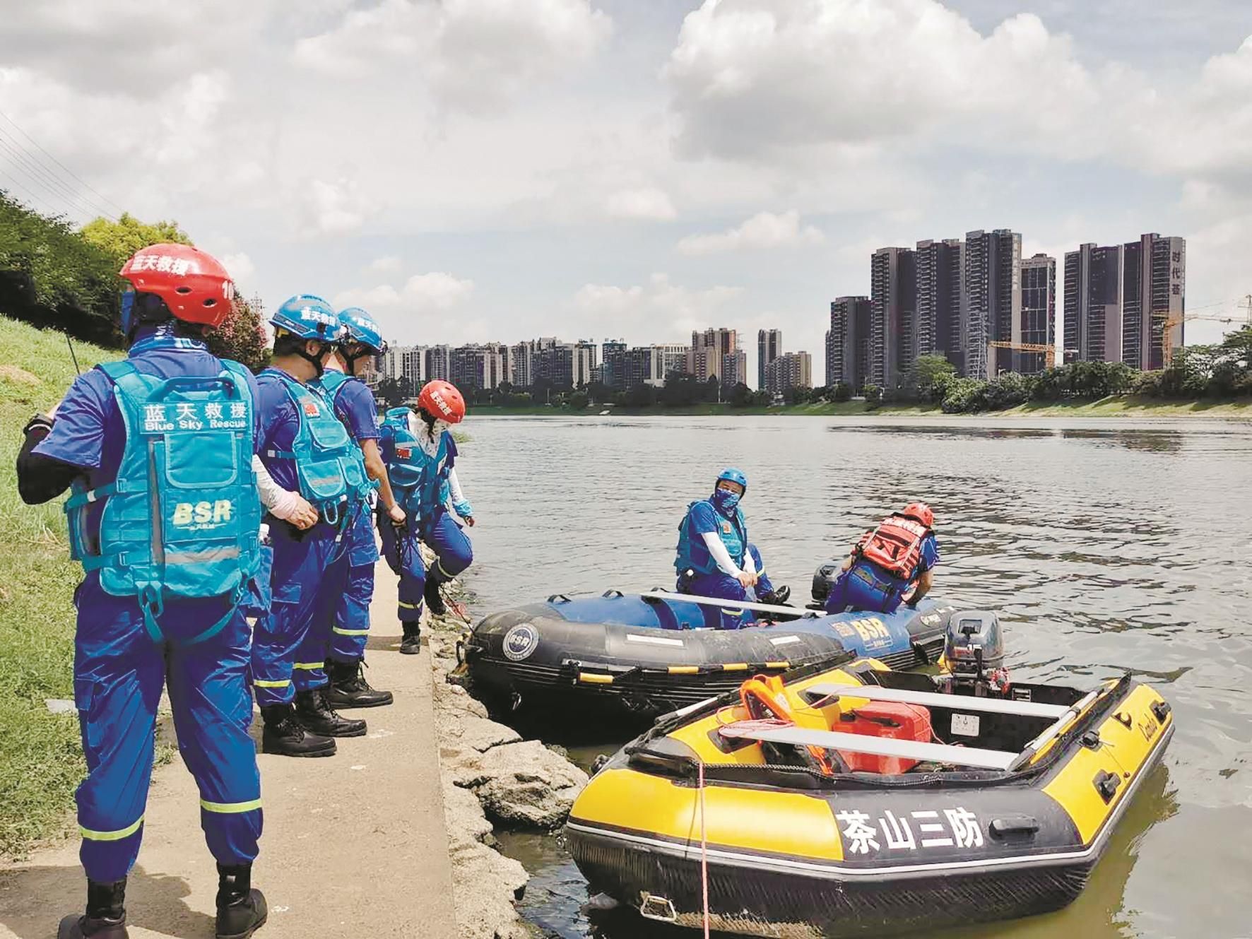 事發(fā)后,東莞茶山消防大隊(duì)救援人員,第一時(shí)間在寒溪河水域開(kāi)展搜救。
