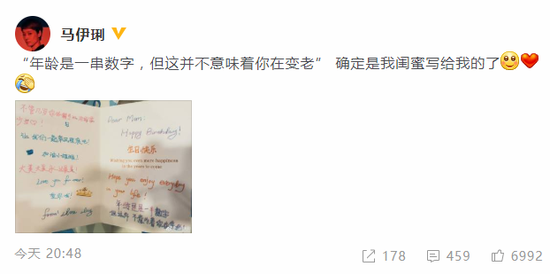 網易娛樂6月30日報道 6月29日是馬伊琍的生日,她在微博曬出女兒送給她的手作卡片,感動稱:“"年齡是一串數字,但這并不意味著你在變老",確定是我閨蜜寫給我的了。”