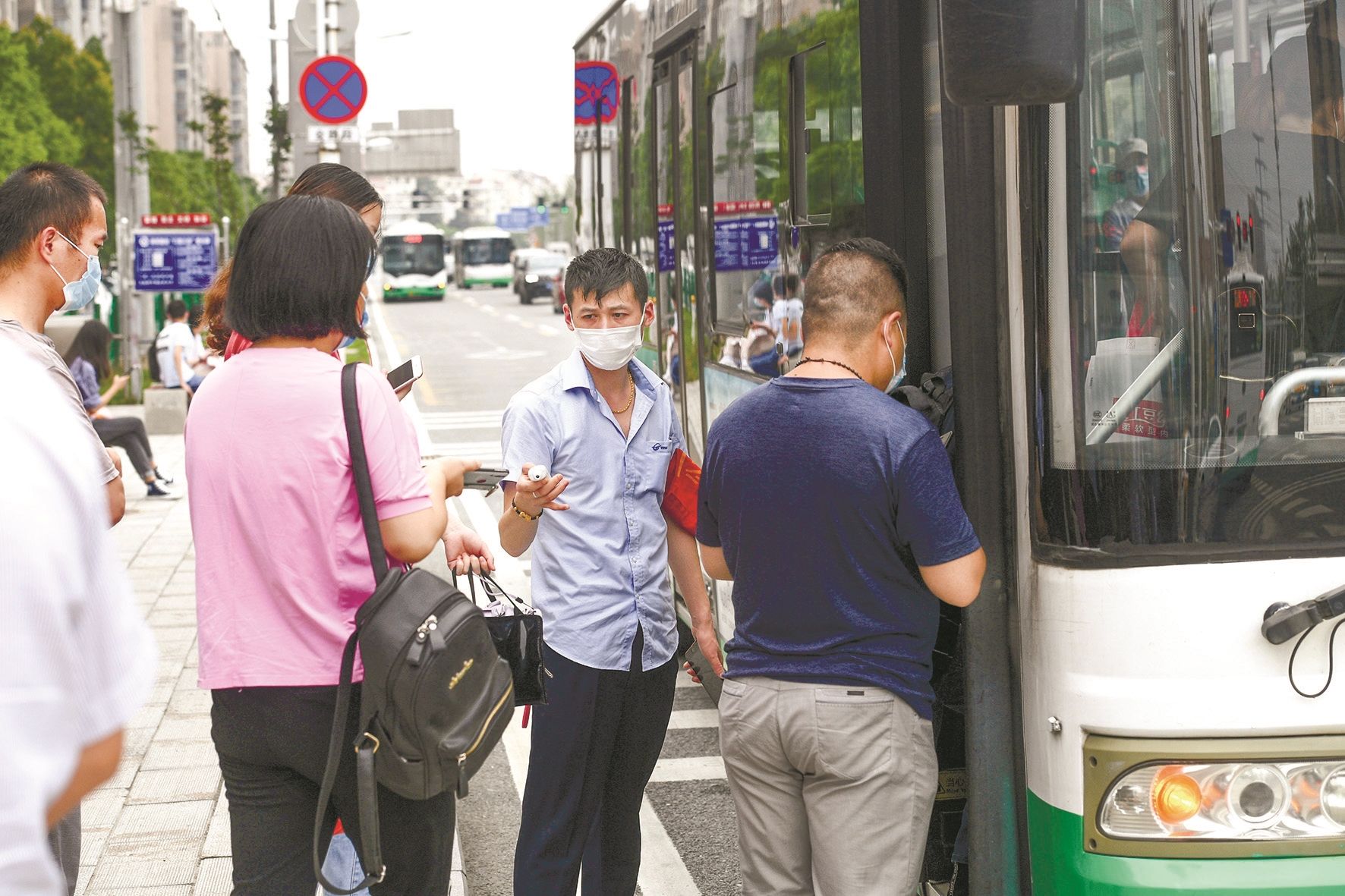 今年首期雙評議中,由黃陂釣臺道客運站開往金銀潭地鐵站的295路公交線,因催促乘客掃碼、車輛急停急走,被乘客投訴。6月24日下午,記者來到了金銀潭地鐵站始發站。下午2時58分,一輛295路公交車進站,十多名乘客涌上車前門,車內安全員下車,對乘客喊“不要擠,一個一個來。”逐一在乘客手腕處測體溫。下午3時08分,又一輛295路公交車進站,有三名乘客上車,最后上車的是一名攜帶包裹的婆婆,記者看到,待其上車投幣后,車輛才關門啟動發出。