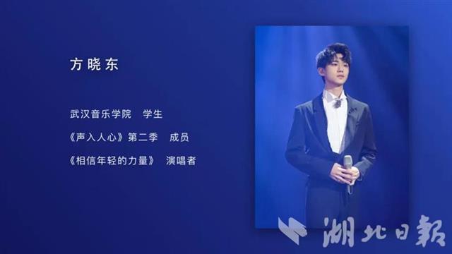 “你曾說我是明天的太陽,現在就讓我來把這世界點亮,你會看到我在風雨中成長……”方曉東是公益歌曲《相信年輕的力量》的演唱者之一,現場,他用歌聲唱響年輕人的成長與力量。
