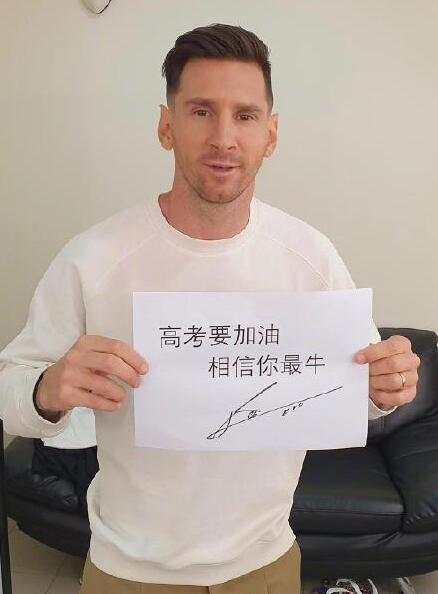 網(wǎng)易娛樂7月4日報道 7月4日,梅西在個人社交平臺上表達(dá)了對即將參加高考的考生們的祝福。他寫道:“給所有在今年夏天將要參加這次考試的年輕人以最大的支持。為你加油,希望你可以取得理想的結(jié)果!”同時,梅西還曬出了自己手拿漢字標(biāo)語的照片,上面寫著:“高考要加油,相信你最牛!”