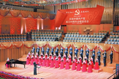 “不忘初心 為黨頌歌”國家大劇院慶祝中國共產黨成立99周年合唱音樂會現(xiàn)場。