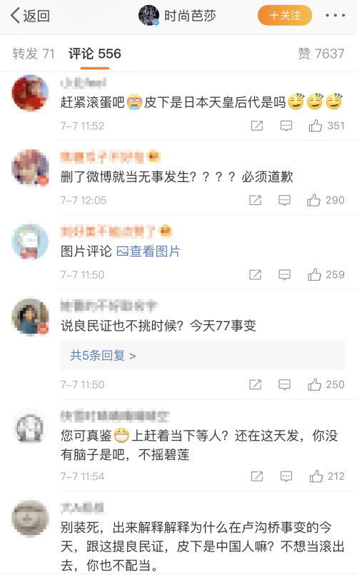 但在@時(shí)尚芭莎 隨后發(fā)布的其他博文中,網(wǎng)友們的憤怒留言霸屏評(píng)論區(qū),要求相關(guān)負(fù)責(zé)人出面道歉。