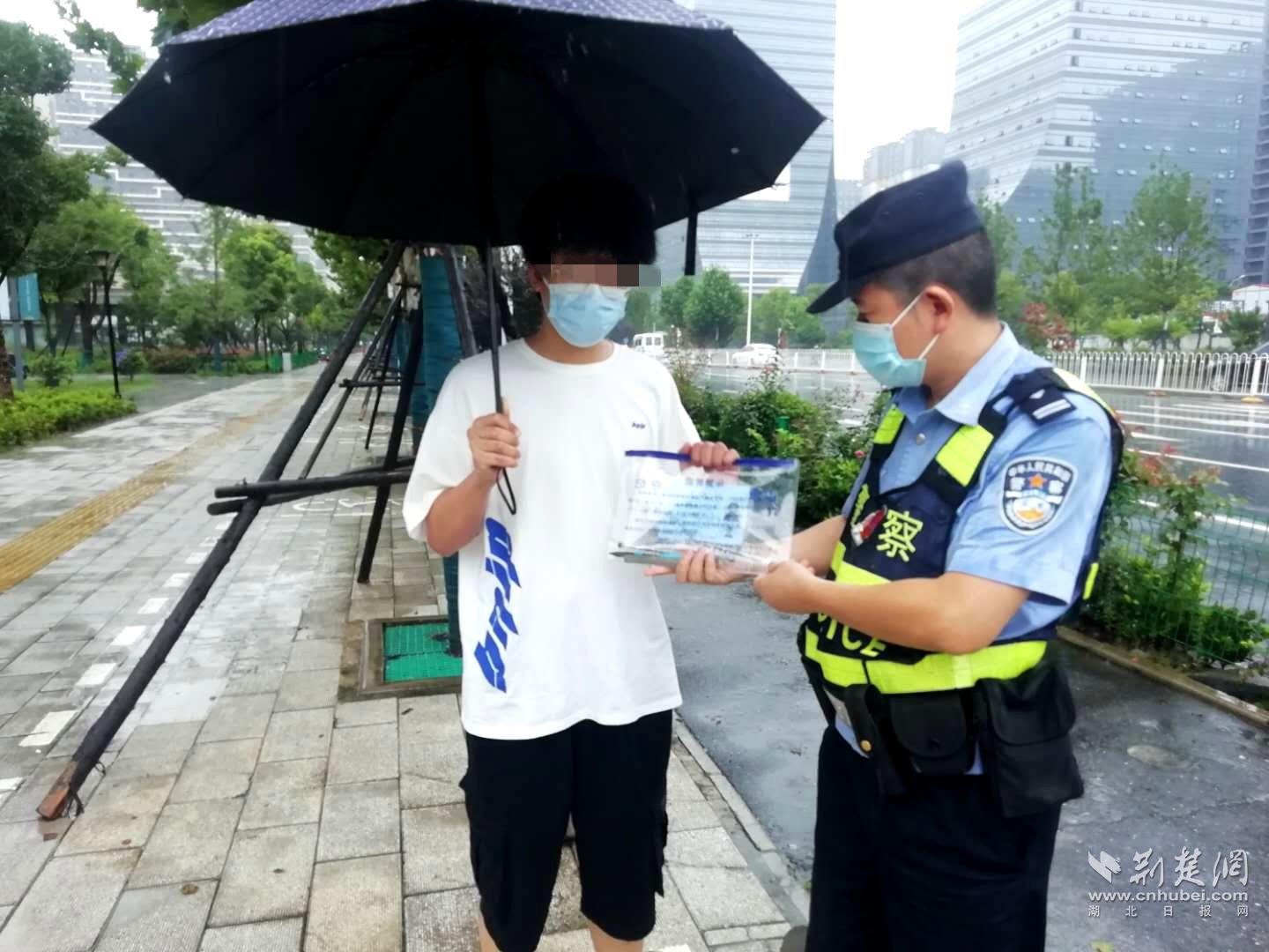 12時59分,民警在漢口城市廣場見到了胡同學,核實身份后,將準考證送到他手上。