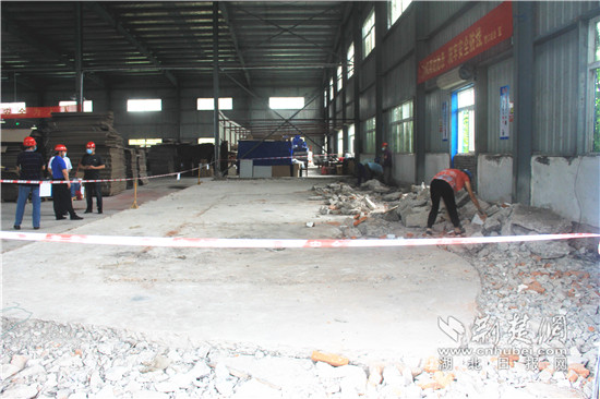 7月2日上午,記者在恒彩公司現場采訪時看到,該鋼結構廠房內存在安全隱患的辦公用房已全部拆除,公司正對廠房地基進行混凝土澆筑加固處理。在廠房另一側裝卸貨的臺階旁,向外傾斜的臺階已作加固處理。