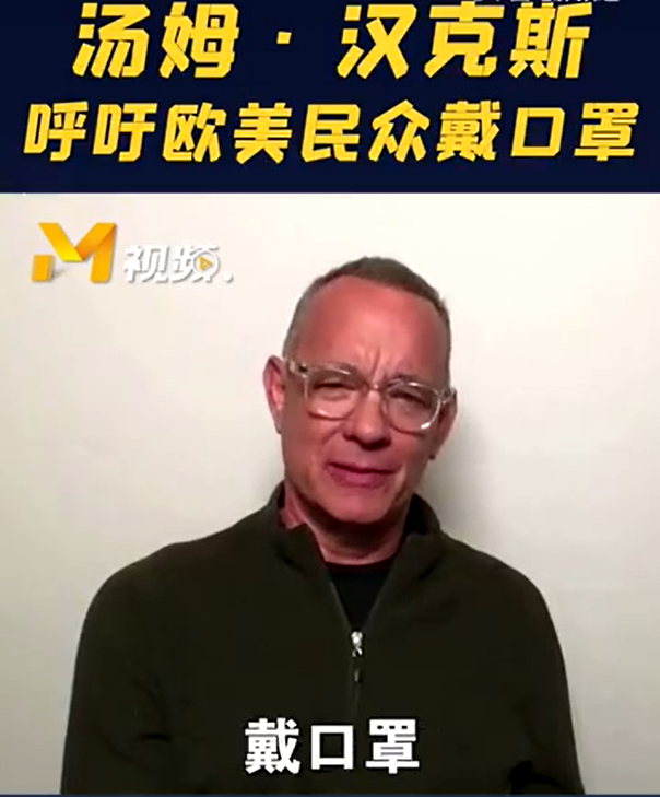 漢克斯錄制視頻呼吁歐美民眾戴口罩:“每個人至少可以做到三件小事:戴口罩、勤洗手、保持距離。如果這都做不到,你也不值得我尊重。”