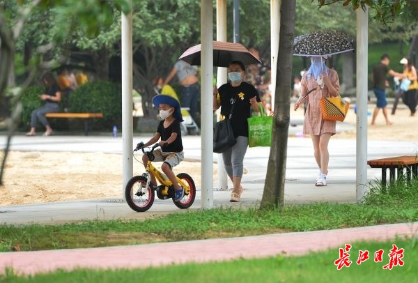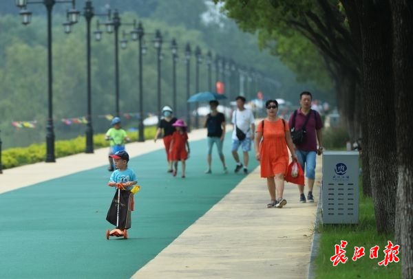 長江網(wǎng)7月10日訊7月10日早上,在漢口江灘三期園區(qū),市民像往常一樣晨練和游玩。因防汛原因,漢口江灘通往沿江大道閘口陸續(xù)封閉,目前江灘一、二、三期園區(qū)分別有江漢門、三陽門、濱江門正常開啟。記者喻志勇攝影報道