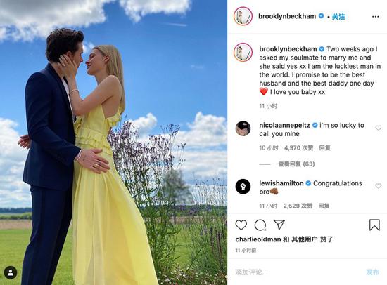 網易娛樂7月12日報道 貝克漢姆大兒子布魯克林在個人社交網站上,官宣求婚成功喜訊,表示兩周前和妮可拉求婚,對方答應了,承諾會當一個最好的丈夫和父親。還曬出兩人擁抱對視的高甜求婚照。