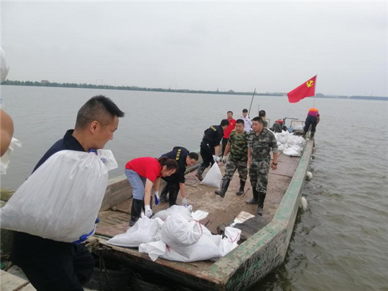 接受命令后,該局簡單動員后,黨員隊員們帶頭沖鋒在前。應急救援隊員三人一組,協調配合,忙著裝料、捆扎。用鍬挖,用手刨,用肩扛,將一袋袋已經裝好的物料迅速裝船。從當日早上9時持續到下午5點半,經過近8個半小時的緊張戰斗,近萬袋搶險袋裝船轉運,順利完成任務。