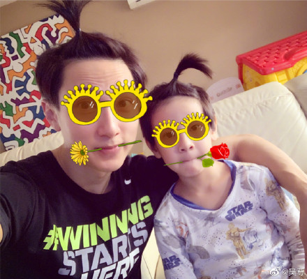 7月15日,吳尊在微博分享孩子們的照片以及多年前飛輪海的合照,并發文:“Max真的有樣學樣...長大后可要《我有我的Young》”。照片中吳尊女兒NeiNei戴粉色小熊發帶,一雙大眼睛非常漂亮。兒子Max學吳尊戴黑色運動發帶與墨鏡,與爸爸一起扎蘋果頭合照,可愛十足。