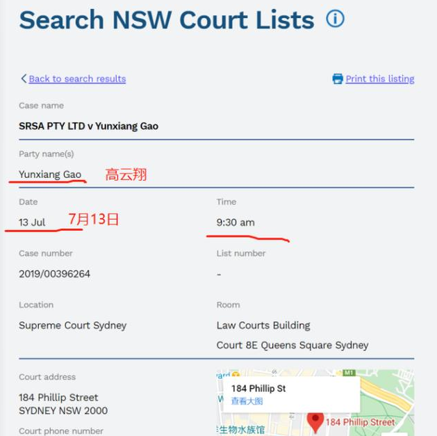 法官費根稱,高云翔現已身在中國。“出于顯而易見的原因,他不會希望返回這個國家(澳洲)”,去參加估計為期4天的民事案件聆訊。