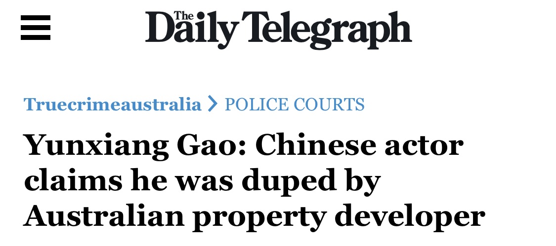 澳媒關于高云翔再被訴訟的報道