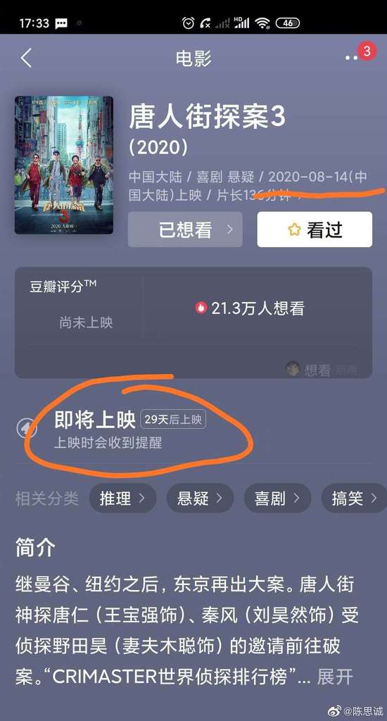 網傳《唐探3》定檔