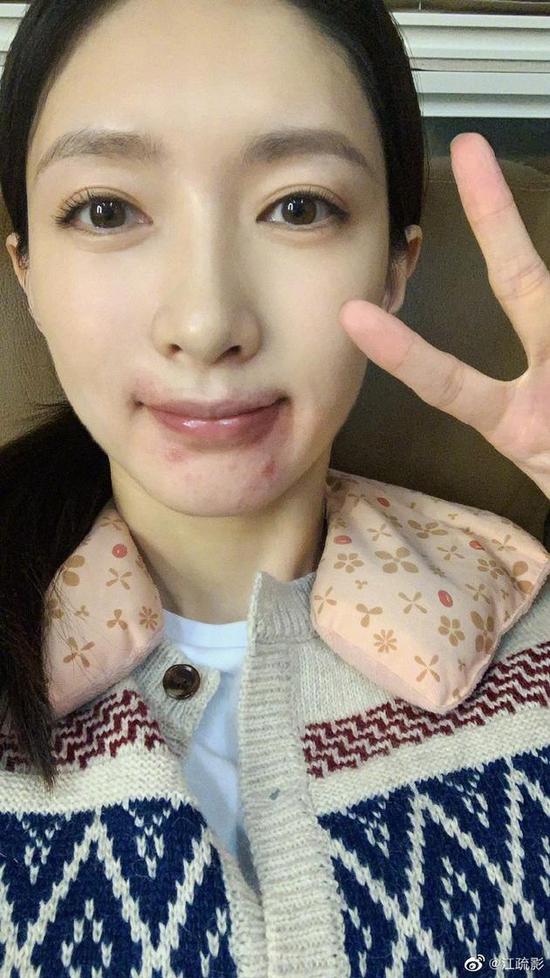 網(wǎng)易娛樂7月18日?qǐng)?bào)道 江疏影在微博曬出一張自拍照,并配文:“吃桃嗎?一起!”照片中她的嘴唇紅腫,唇周和下巴也發(fā)起了紅色痘痘,十分醒目。她還在拍照時(shí)對(duì)鏡比v,搞怪逗趣。