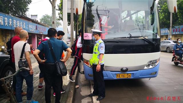 由五輛大巴組成的送考車隊,在警車的前后護衛下,浩浩蕩蕩開往15公里外的考點鋼城六中。行進途中,開道警車嚴格控制車速、車距,王濤駕駛“漢警快騎”摩托車打開擴音設備,提醒來往社會車輛減速慢行,沿途路口早高峰執勤警力也紛紛對車隊提供護航。最終,車隊只用了20分鐘,就安全順利抵達考點。