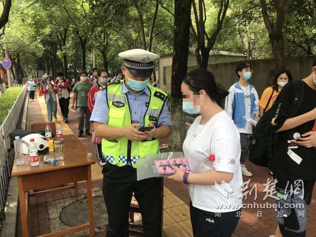 7月20日,武漢青山區交通大隊全警動員,全力維護各考點及周邊交通秩序,為各類考生第一時間提供救助。