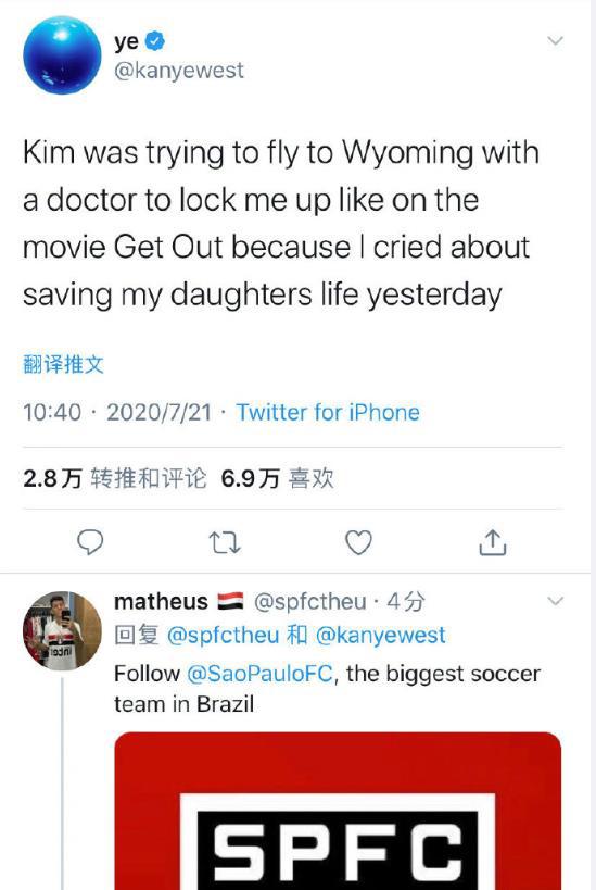 網易娛樂7月21日報道 21日,侃爺連發數條推文,稱“就因為我昨天哭著講述拯救女兒的事,我老婆Kim帶著醫生飛往懷俄明州,要把我關起來,看起來像電影《逃出絕命鎮》一樣”。