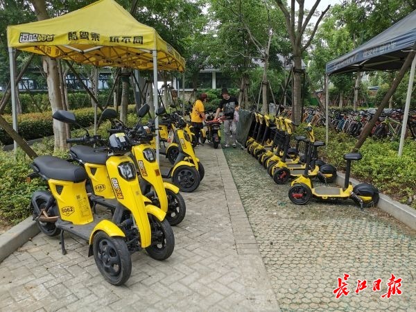 長江網(wǎng)7月28日訊(記者劉海鋒)“在綠道玩,有臺小電動車,省力不少。”27日,在東湖綠道二期白馬驛站,市民代先生在一排黃色電動車前駐足,不一會,掃碼騎走一臺。今年4月8日東湖景區(qū)恢復(fù)開放以來,細心市民發(fā)現(xiàn),東湖綠道二期設(shè)置了多個電動“小黃車”租還點,由于造型可愛,速度不快,在線路較長的東湖綠道二期頗受歡迎。