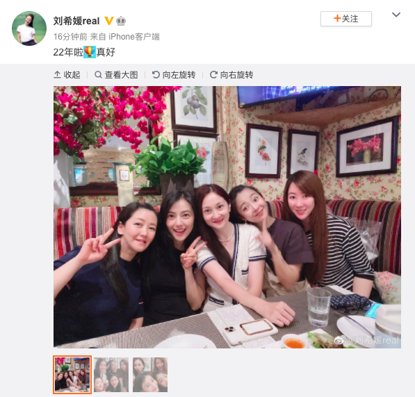 27日,演員劉希媛在社交平臺上曬出與好姐妹高圓圓聚會的合照,并稱:“22年啦,真好”。照片中,高圓圓穿黑色緊身上衣身材豐滿,濾鏡下面色紅潤狀態好。
