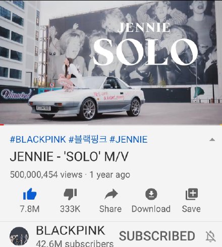2018年11月發行的《SOLO》MV公開后僅23天就突破1億次,創下了韓國SOLO女歌手最短時間紀錄。90天后突破2億次,182天后突破3億次,13個月后突破4億次,不斷刷新著自身記錄。