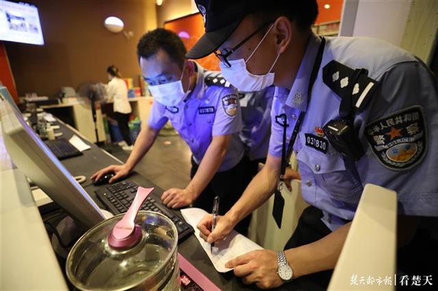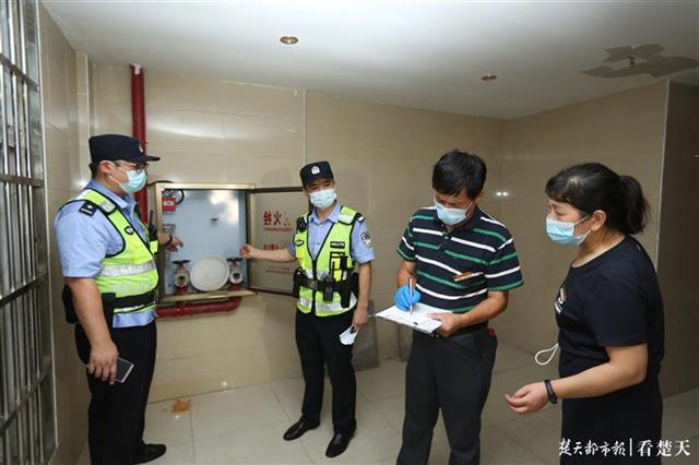 當晚8時,江漢區華安里社區人員車輛川流不息,道路兩旁的夜市燈火通明,這里曾是武漢人口密度最大的城中村,目前仍有3萬余名務工人員居住于此。江漢區公安分局120余名警力分組行動,對居民樓、小旅館、商鋪展開清查、排查,同時向群眾宣傳防范電信網絡詐騙知識。民警檢查至華安里社區某燒烤店時,發現該店廚房操作間內,存放有兩個簡易改裝的柴油爐,存在較大消防安全隱患,按照《消防法》有關規定,民警責令該店老板立即整改。
